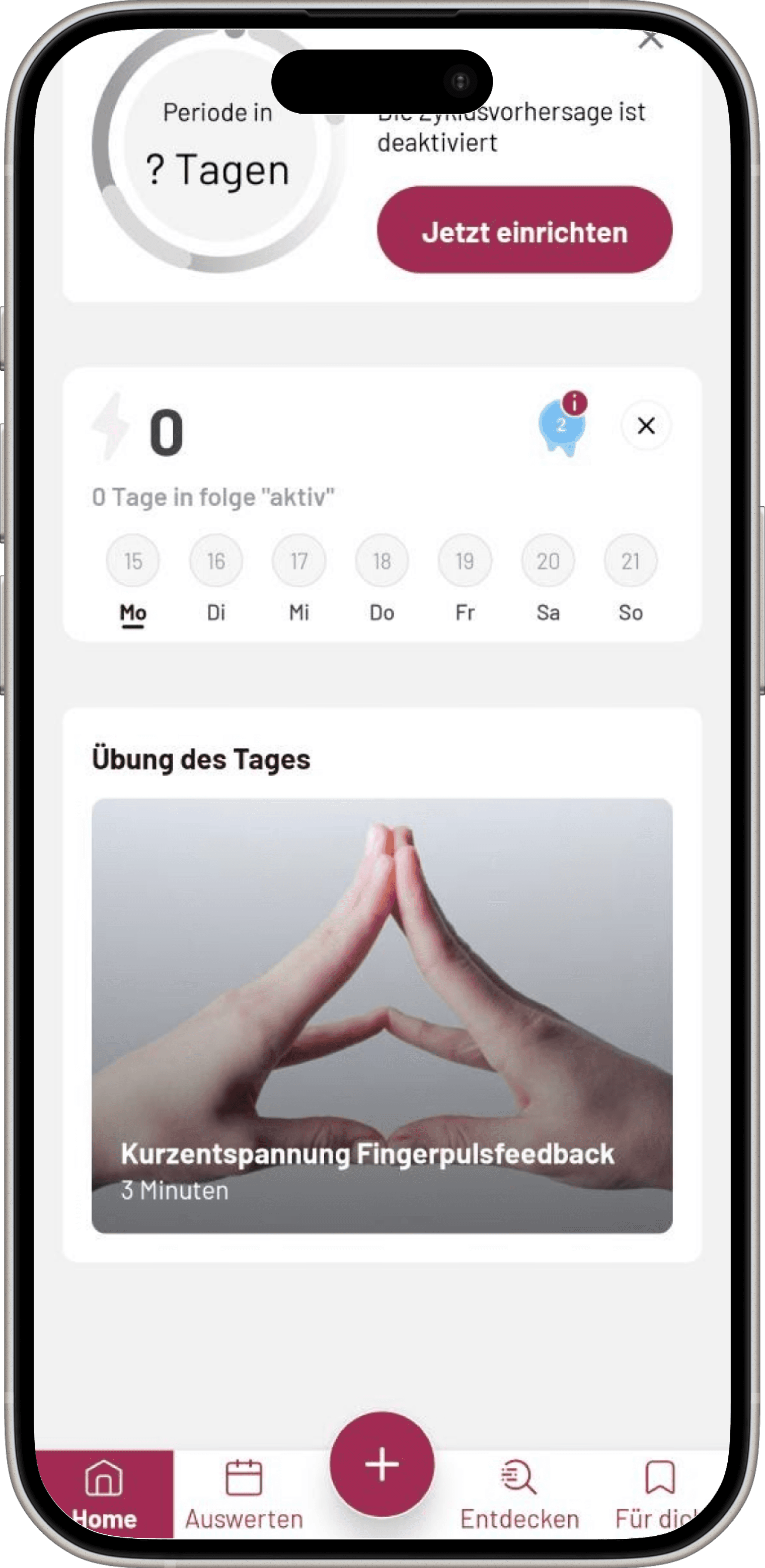 Zyklus-Tracking bleibt nachgelagert auf dem Screen