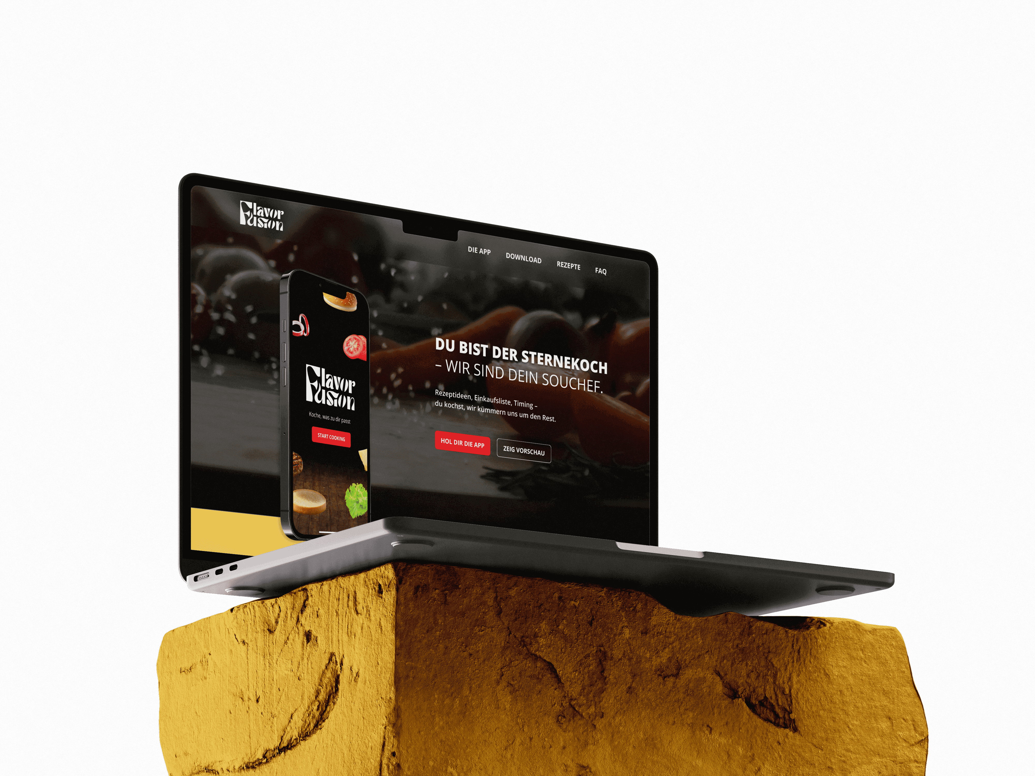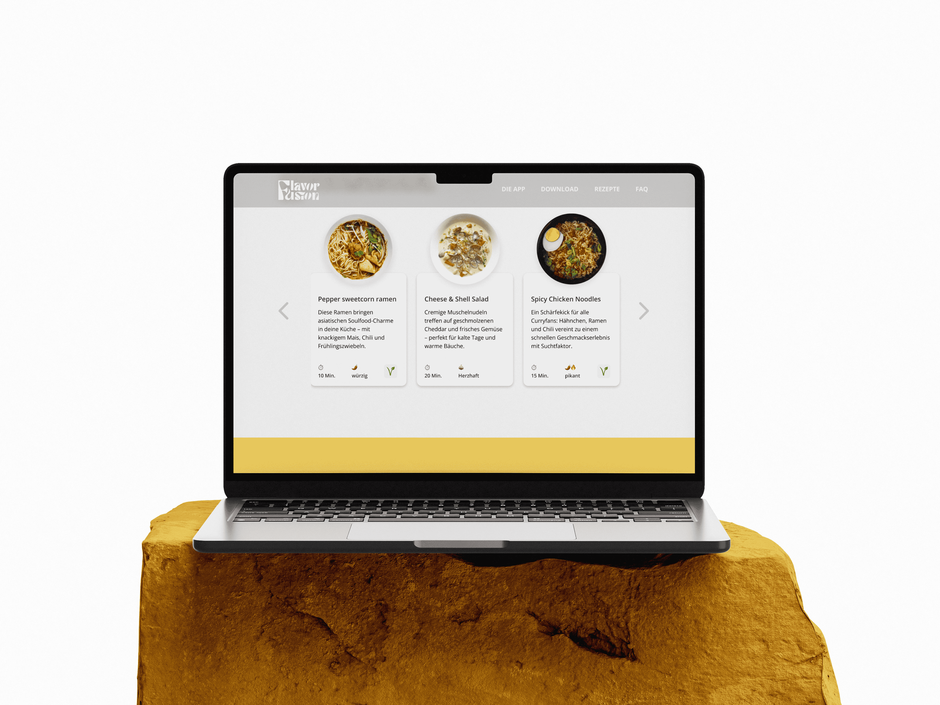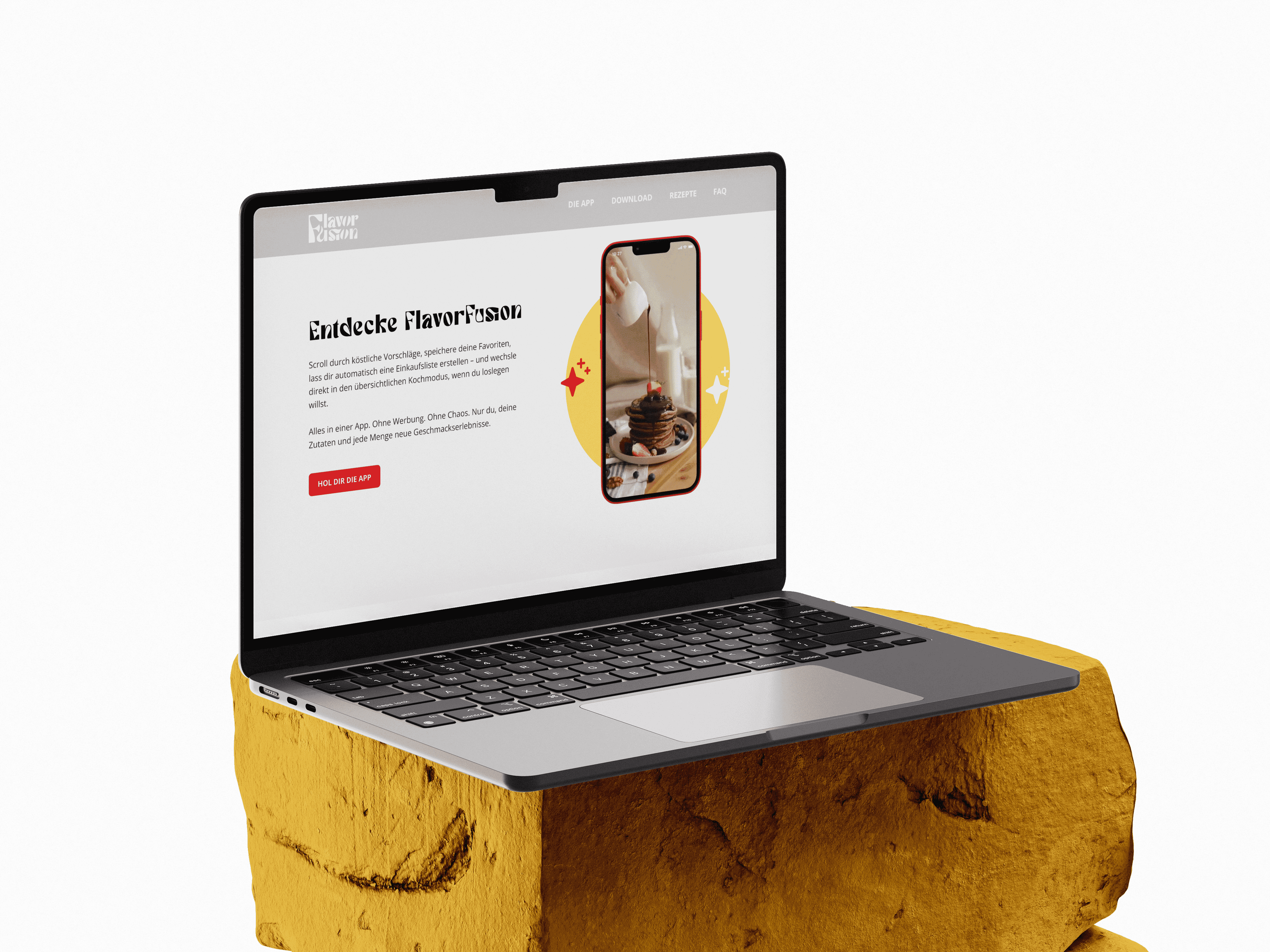 Landingpage zur Präsentation der neuen Rezept-App FlavorFusion