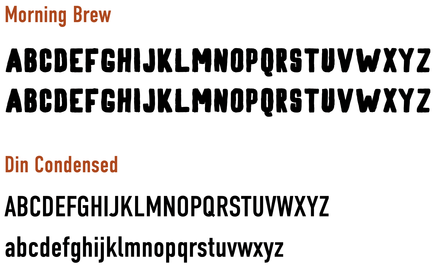Für konsistente Markenwirkung habe ich DIN Condensed und Morning Brew aus dem Logo übernommen: DIN Condensed für gut lesbare UI- und Fließtexte, Morning Brew als prägnante Headline-Schrift. Ein klares Raster steuert Hierarchie und Ausrichtung je nach Funktionsbereich.
